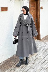 Lamelif Uzun Apoletli Oversize Trenç Antrasit