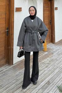 Lamelif Bağlama Detaylı Kaşe Kaban Antrasit