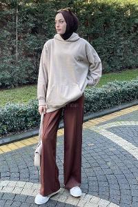Lamelif Üç İplik Kanguru Cep Sweatshirt Sütlü Kahve