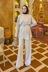 Lamelif Belden Oturtmalı Oysho Takım Bej