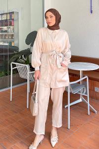 Lamelif Balance Armalı Çımalı İkili Tesettür Takım Camel