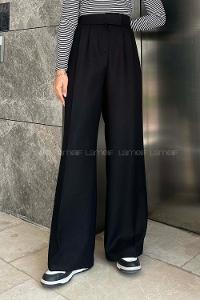 Lamelif Yüksek Bel İspanyol Paça Gizli Cep Pantolon Siyah