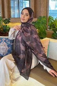 Lamelif Batik Çiçek Desen Bambu Şal Acı Kahve