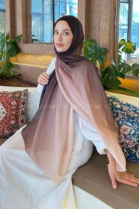 Lamelif Degrade Desen Soft Şal Acı Kahve Bej