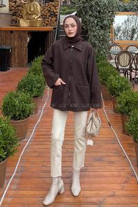 Lamelif Fermuarlı Tesettür Ceket Acı Kahve