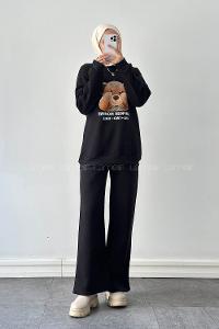 Lamelif Ayıcık Baskılı İkili Takım Siyah