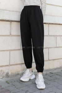 Lamelif Üç İplik Salaş Model Eşofman Altı Siyah