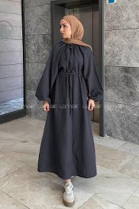 Lamelif Balon Kol Bağlamalı Tesettür Elbise