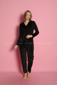 Lamelif Frans Kadife Kumaş Pijama Takım Seti Siyah