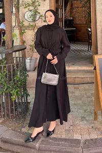 Lamelif Taş Detaylı Tesettür Elbise Siyah