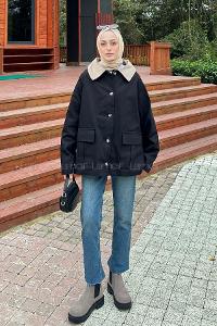 Lamelif Fermuarlı Kaşe Ceket Siyah