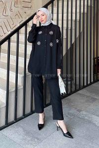 Lamelif Kurdela Detaylı Triko Takım Siyah