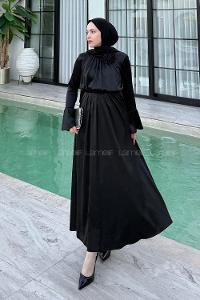 Lamelif Taş Detaylı Tesettür Elbise Siyah