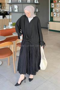 Lamelif Önden Bağlamalı V Yaka Bluz Siyah