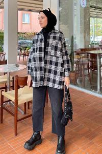 Lamelif Ekose Desen Gömlek Siyah- Beyaz