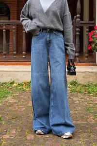 Lamelif Bol Paça Pantolon Mavi Yıkama