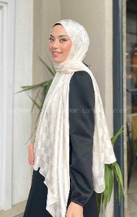 Lamelif Zebra Desen Jakar Serisi Şal Beyaz