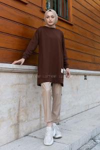 Lamelif Manşeti Biyeli Tunik Acı Kahve