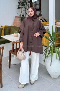 Lamelif Dekoratif Cep Detaylı Tesettür Ceket Acı Kahve