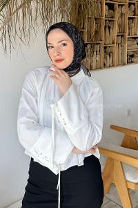 Lamelif Retro Desen Soft Eşarp Ekru Siyah