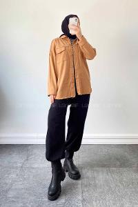 Lamelif Cepli Kaşe Ceket Taş Rengi