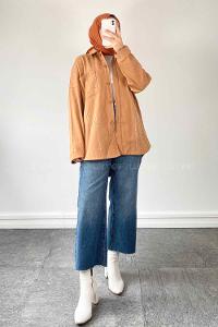 lamelif Piliseli Uzun Gömlek Acı Kahve