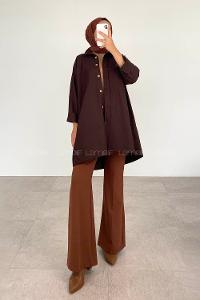 Lamelif Müslin Tesettür Gömlek Acı Kahve