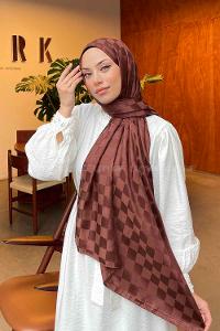 Lamelif Dama Desen Jakar Şal Çikolata Kahve