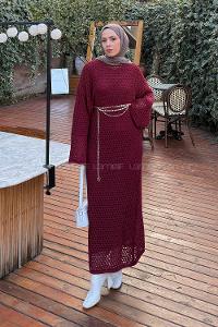 Lamelif Ajurlu Tesettür Elbise Bordo