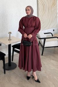 Lamelif Bel Tünel Detaylı Elbise Bordo