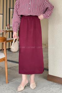 Lamelif Krsital Tesettür Etek Bordo