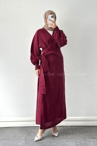 Lamelif Bağlama Detaylı Tesettür Elbise Bordo