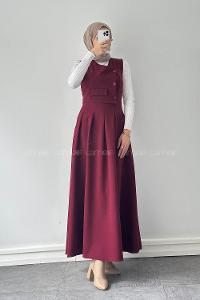 Lamelif Ön Yarım Düğme Detaylı Müslin Kumaş Tesettür Elbise Bordo