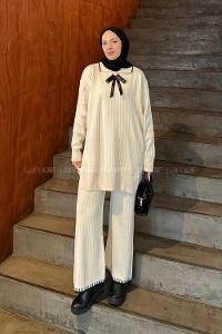 Lamelif Kurdela Detaylı Triko Takım Krem