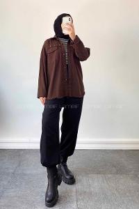 Lamelif Dekoratif Cep Detaylı Tesettür Ceket Acı Kahve
