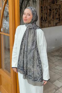 Gray Cotton Fabric Striped Printed Shawl
