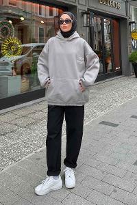 Gray Hood Neck Long Arm Unprinted Sweatshirt