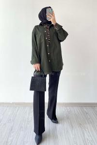 Oil Green Shirt Collar Long Arm Cotton Shirt
