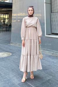Beige Medium Crew Neck Cotton Fabric Unprinted Dresess