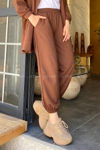 Bitter Brown Elastic Trousers Elastic Waist Regular Cut Bottom Tracksuit