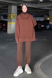 Brown With Milk Hood Neck Long Arm Unprinted Sweatshirt