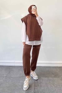 Bitter Brown Hood Neck Long Arm Cotton Elastan Regular Trousers Comfortable Suit