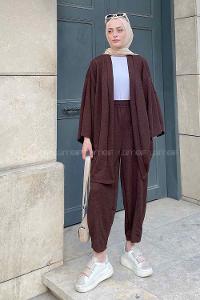 Bitter Brown Crew Neck Long Arm Modal Viscose Regular Trousers Comfortable Suit
