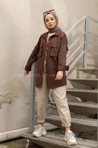 Bitter Brown Shirt Collar Long Arm Cotton Shirt