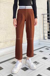 Bitter Brown Lycra Polyester High Waist Material Pants
