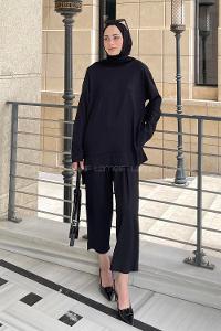 Black Crew Neck Long Arm Viscose Fabric Elastan Regular Trousers Comfortable Suit