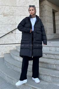 Black Hood Neck Long Arm Coat