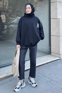 Black Hood Neck Long Arm Unprinted Sweatshirt
