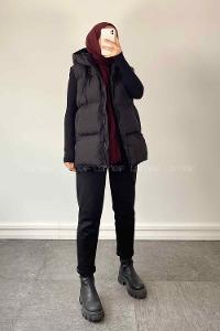 Black Hood Neck Zero Arm Cotton Unprinted Vest