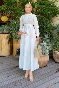 Bone Medium Crew Neck Cotton Fabric Unprinted Dresess